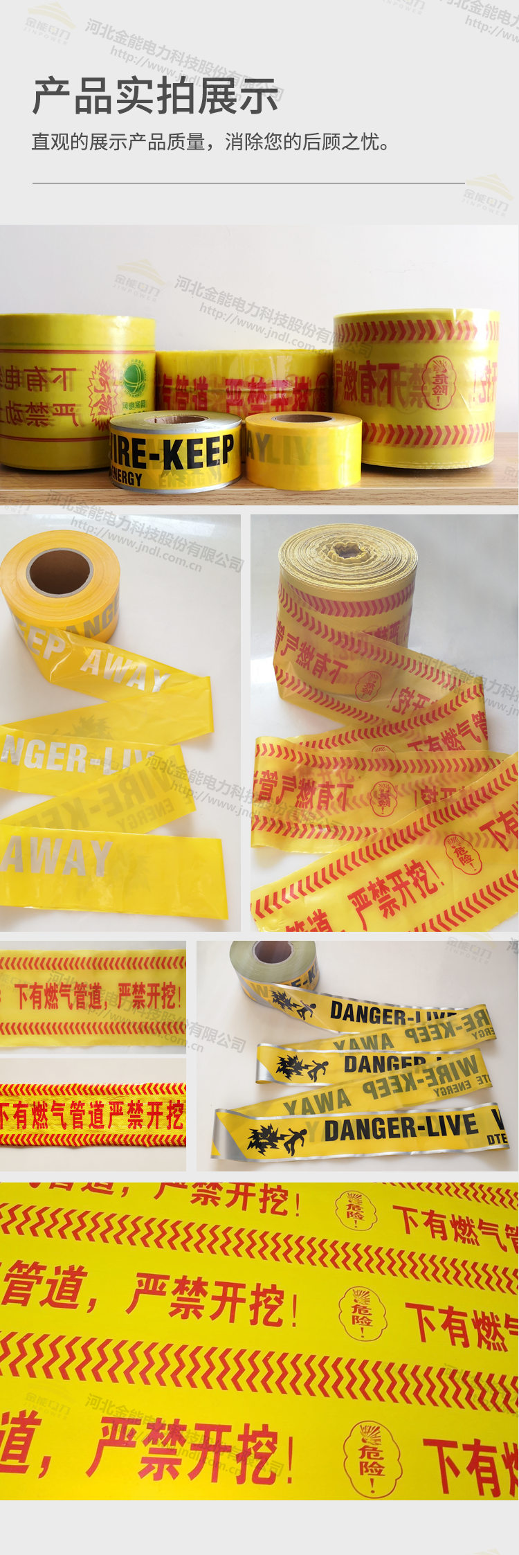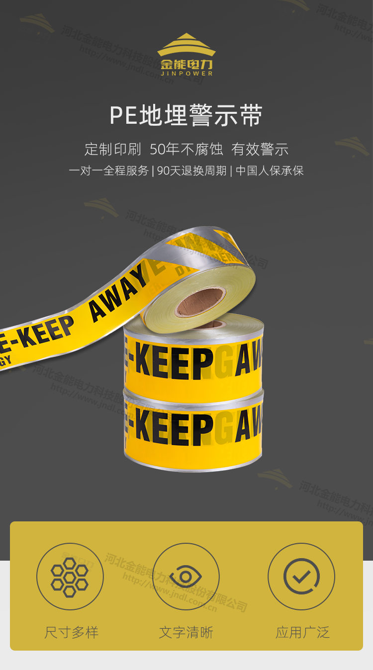 地埋式警示帶 下有電纜燃氣示蹤帶 PE燃氣管道標記帶可探測警示帶