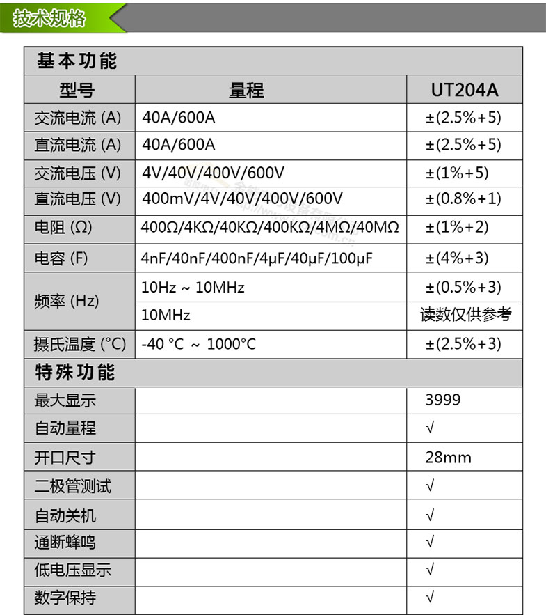 優利德鉗形電流表UT204A